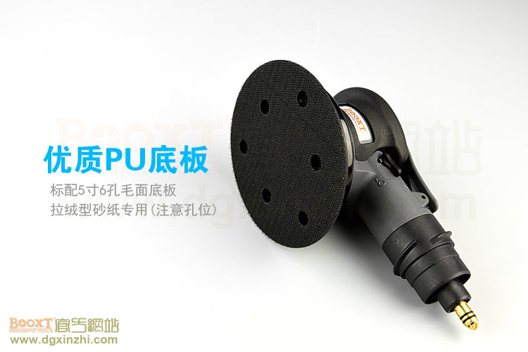 • 產(chǎn)品參數(shù): 底盤尺寸:5寸(125mm);轉(zhuǎn)速:11000rpm;偏擺:5mm;重量:0.84kg;使用氣壓:0.65Mpa;推薦氣管:內(nèi)徑8mm;耗氣量:0.53立方米/分鐘;需搭配集塵桶使用,機(jī)器使用時(shí)多加氣動(dòng)油保養(yǎng)。