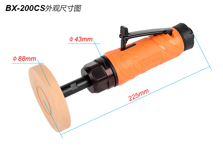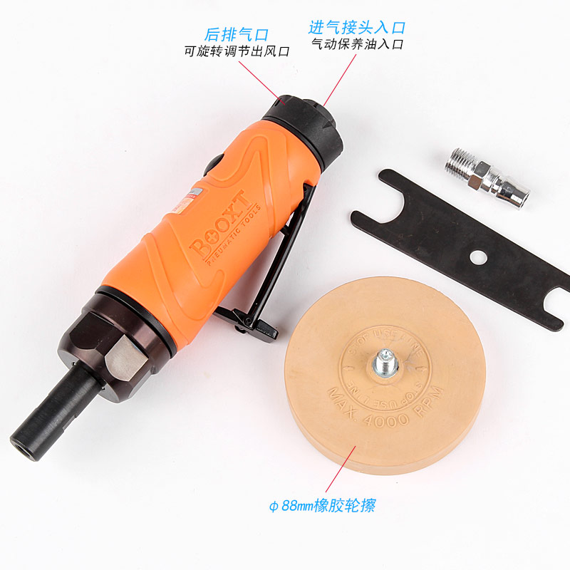 • 產(chǎn)品參數(shù): 膠輪尺寸:88*15mm 空載轉(zhuǎn)速:3600rpm 馬達(dá)馬力:0.5HP 機(jī)身直徑:41mm 總 長:225mm 重 量:0.94kg 耗 氣 量:3.5cfm