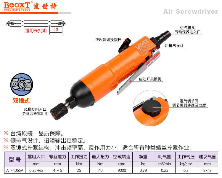東莞市強(qiáng)勁五金工具有限公司提供臺灣BOOXT波世特品牌氣動(dòng)工具,直型風(fēng)批AT-4065A廠家直銷,首件享特價(jià)。咨詢熱線:4008301980