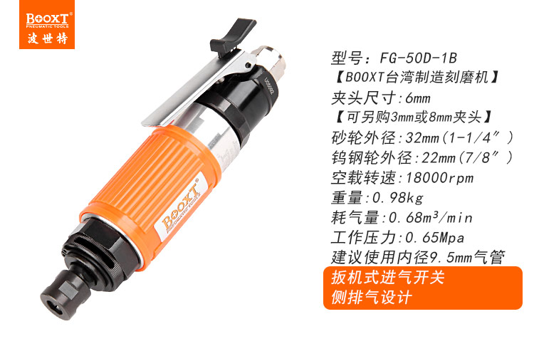 東莞市強勁五金工具有限公司提供臺灣BOOXT波世特品牌氣動工具,重型直風磨機FG-50D-1B廠家直銷,首件享特價。咨詢熱線:4008301980