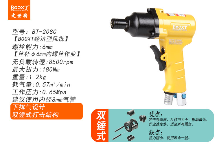 東莞市強勁五金工具有限公司提供臺灣BOOXT波世特品牌氣動工具,槍式風批BT-208C廠家直銷,首件享特價。咨詢熱線:4008301980