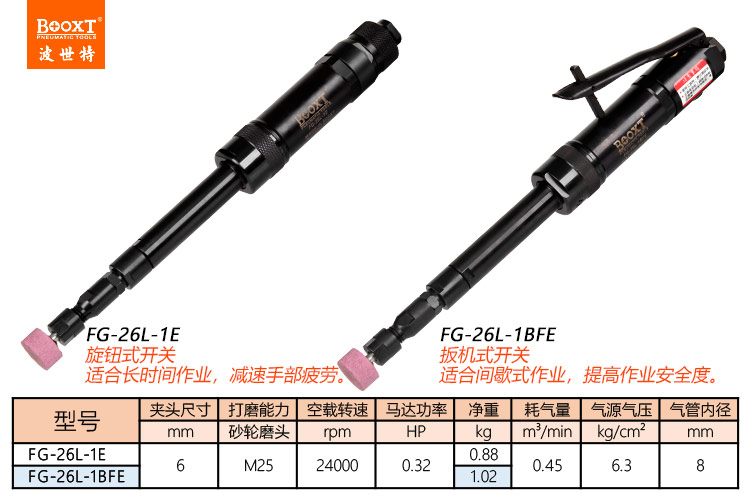 東莞市強勁五金工具有限公司提供臺灣BOOXT波世特品牌氣動工具,加長風(fēng)磨機FG-26L-1E廠家直銷,首件享特價。咨詢熱線:4008301980