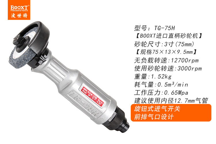 東莞市強勁五金工具有限公司提供臺灣BOOXT波世特品牌氣動工具,直柄氣動砂輪機TG-75H廠家直銷,首件享特價。咨詢熱線:4008301980