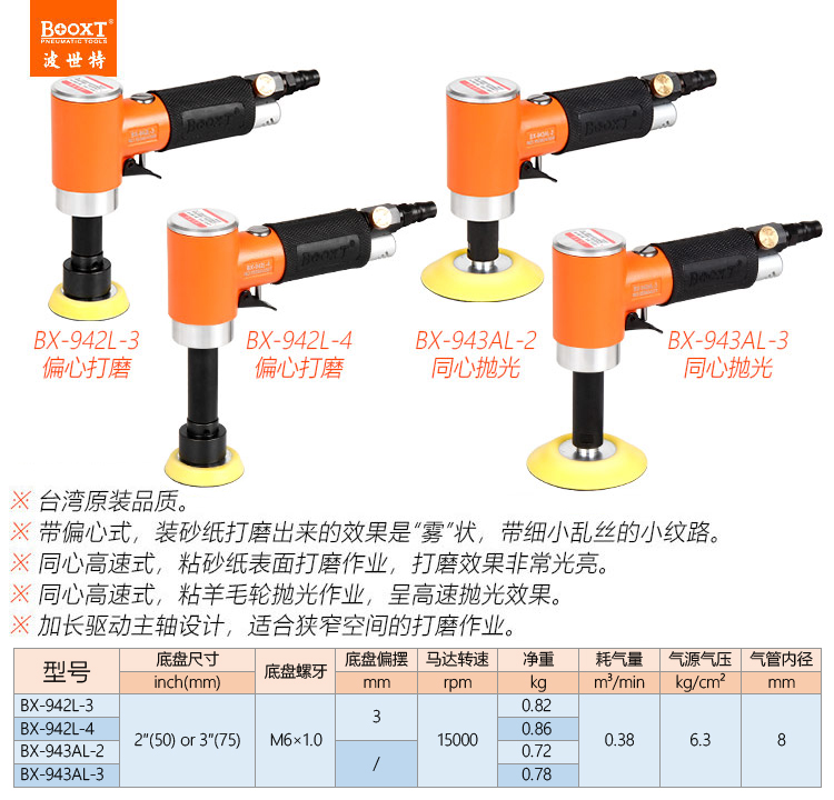 東莞強勁五金工具有限公司提供臺灣BOOXT波世特氣動工具,加長氣動砂紙機BX-942L-3廠家直銷,首件享特價。咨詢熱線:4008301980