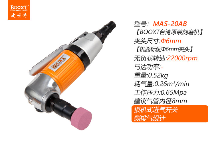 東莞市強勁五金工具有限公司提供臺灣BOOXT波世特品牌氣動工具,彎頭氣動打磨機MAS-20AB廠家直銷,首件享特價。咨詢熱線:4008301980