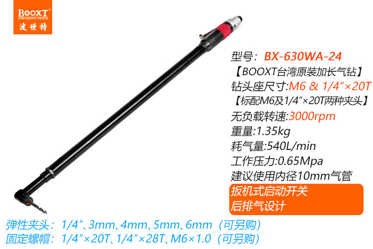 東莞市強(qiáng)勁五金工具有限公司提供臺灣BOOXT波世特品牌氣動工具,特加長彎頭氣動鉆BX-630WA-24廠家直銷,首件享特價。咨詢熱線:4008301980