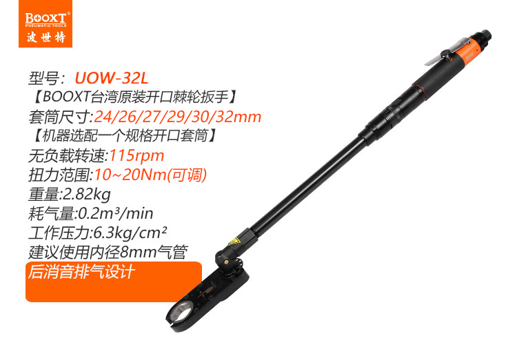 東莞市強(qiáng)勁五金工具有限公司提供臺(tái)灣BOOXT波世特品牌氣動(dòng)工具,加長(zhǎng)型氣動(dòng)開口扳手UOW-32L廠家直銷,首件享特價(jià)。咨詢熱線:4008301980