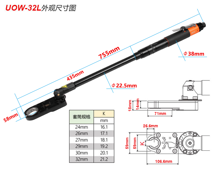 加長(zhǎng)型氣動(dòng)開口扳手UOW-32L