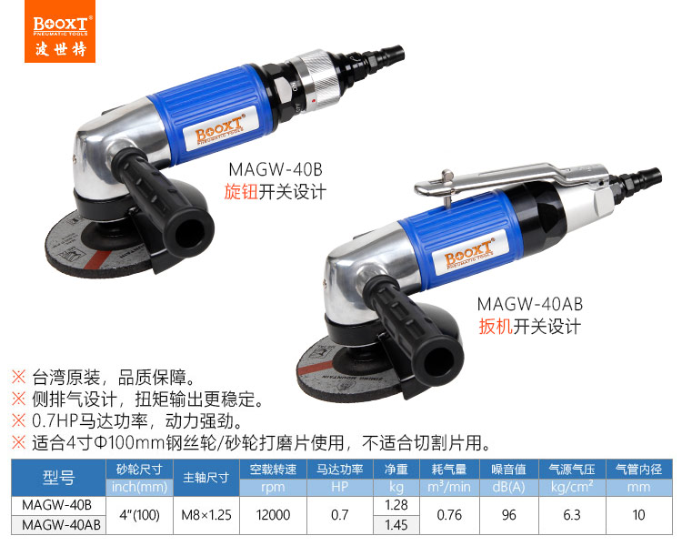 東莞市強(qiáng)勁五金工具有限公司提供臺(tái)灣BOOXT波世特品牌氣動(dòng)工具,日系氣動(dòng)角磨機(jī)MAGW-40B廠家直銷(xiāo),首件享特價(jià)。咨詢熱線:4008301980