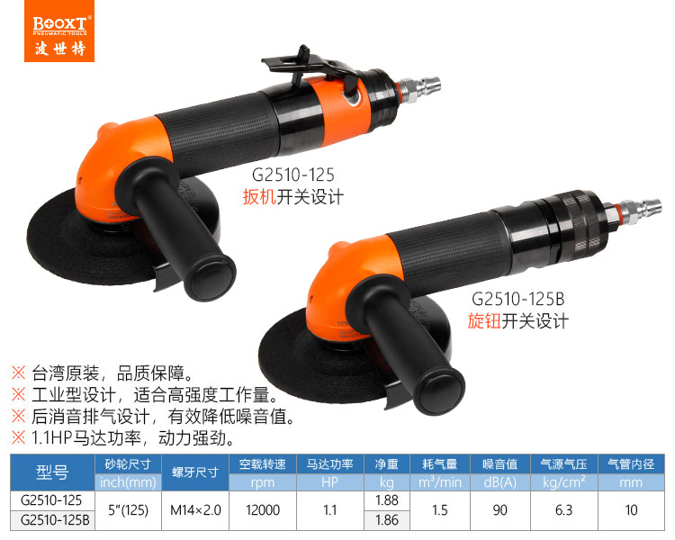 東莞市強勁五金工具有限公司提供臺灣BOOXT波世特品牌氣動工具,工業(yè)級氣動角磨機G2510-125B廠家直銷,首件享特價。咨詢熱線:4008301980