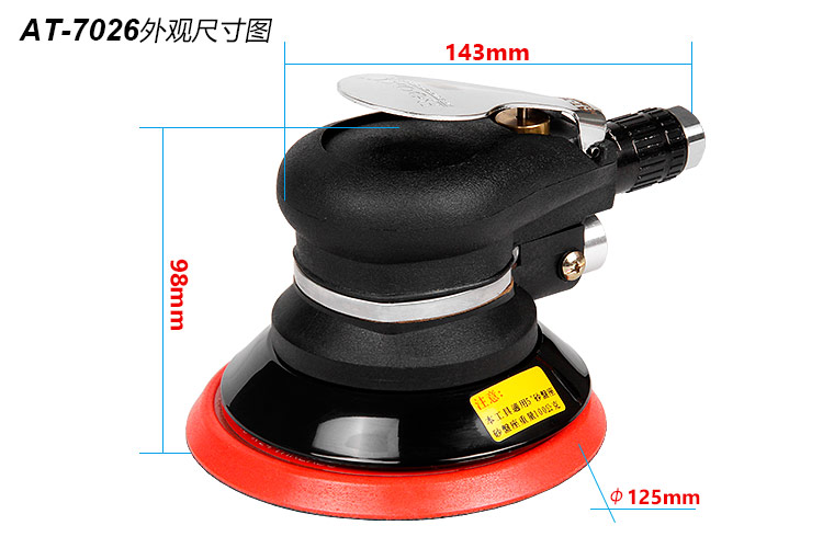 • 產(chǎn)品參數(shù): 底盤尺寸:125mm 【5寸】 空載轉(zhuǎn)速:12000rpm 偏擺直徑:5mm 重 量:1.0kg 耗 氣 量:0.48m3/min 【工業(yè)型】