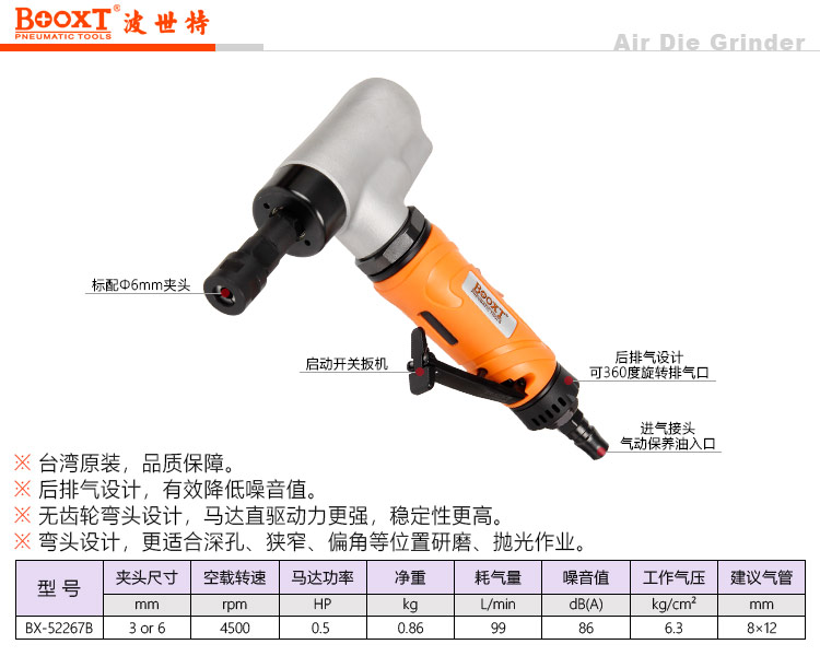 東莞市強(qiáng)勁五金工具有限公司提供臺灣BOOXT波世特品牌氣動(dòng)工具,4500轉(zhuǎn)風(fēng)磨機(jī)BX-52267B廠家直銷,首件享特價(jià)。咨詢熱線:4008301980