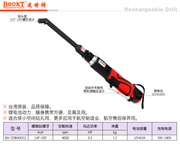 東莞市強(qiáng)勁五金工具有限公司提供臺(tái)灣BOOXT波世特品牌五金工具,鋰電加長(zhǎng)航空彎角鉆BX-120B45DCL廠家直銷,首件享特價(jià)。咨詢熱線:4008301980