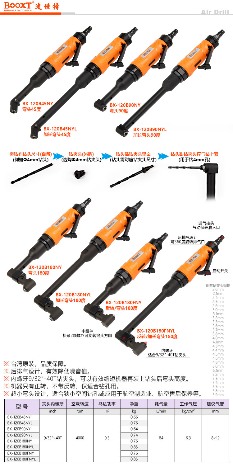 東莞市強(qiáng)勁五金工具有限公司提供臺(tái)灣BOOXT波世特品牌氣動(dòng)工具,航空45度彎角氣鉆BX-120B45NY廠(chǎng)家直銷(xiāo),首件享特價(jià)。咨詢(xún)熱線(xiàn):4008301980