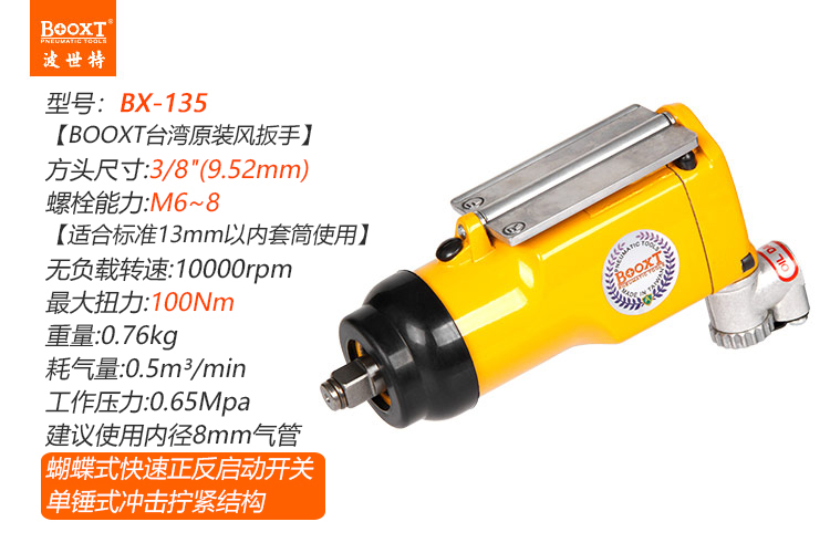 東莞市強勁五金工具有限公司提供臺灣BOOXT波世特品牌氣動工具,氣動扳手BX-135廠家直銷,首件享特價。咨詢熱線:4008301980