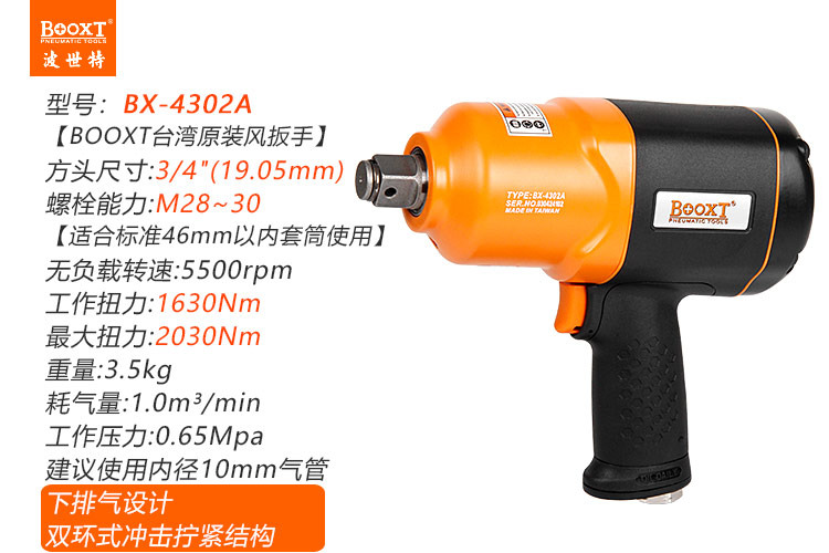東莞市強(qiáng)勁五金工具有限公司提供臺(tái)灣BOOXT波世特品牌氣動(dòng)工具,中型風(fēng)炮BX-4302A廠家直銷(xiāo),首件享特價(jià)。咨詢(xún)熱線:4008301980