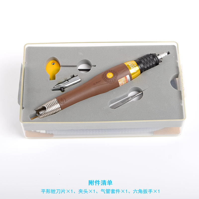 • 產(chǎn)品參數(shù): 夾頭尺寸:3mm;行程:1.2mm;沖程數(shù):10000bpm;長度:190mm;重量:0.15kg;耗氣量:0.21立方米/分鐘;推薦氣管尺寸:5mm